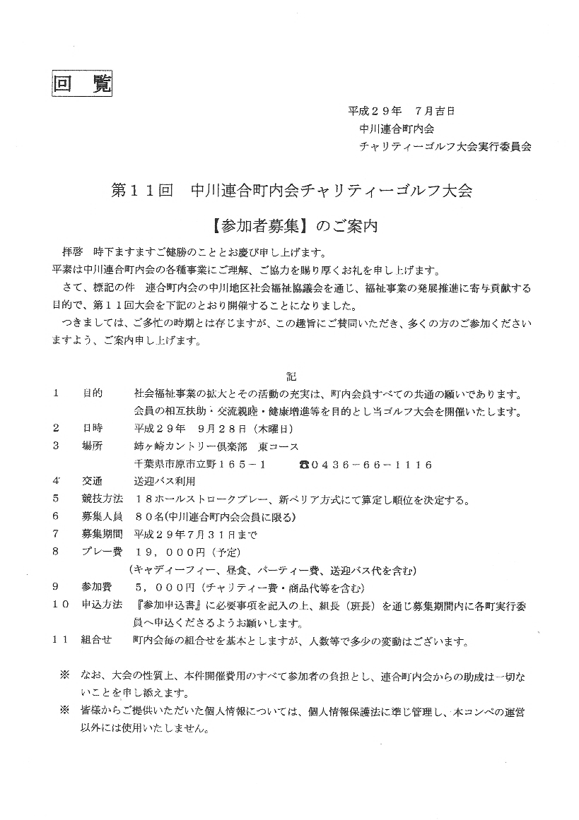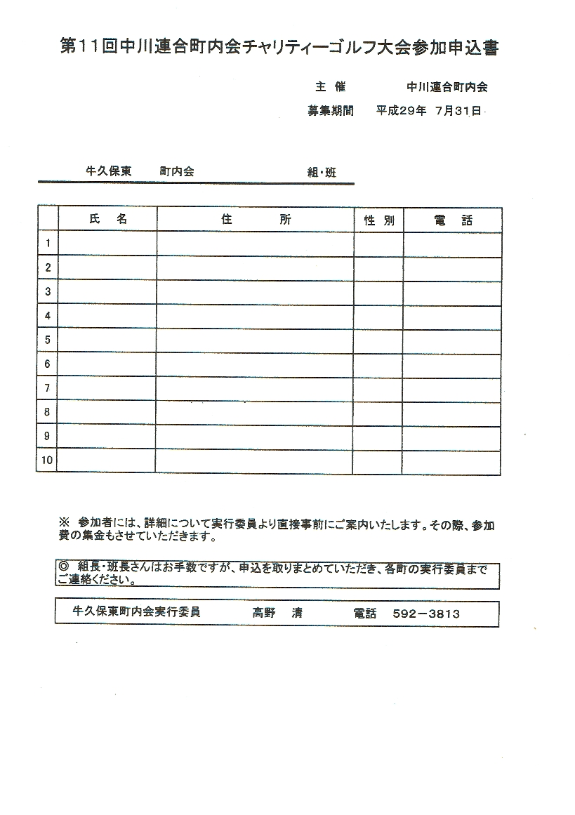 第11回 中川連合町内会チャリティーゴルフ大会 参加者募集 参加申込書 共有: クリックして X で共有 (新しいウィンドウで開きます) X Facebook で共有するにはクリックしてください (新しいウィンドウで開きます) Facebook クリックして印刷 (新しいウィンドウで開きます) 印刷 関連