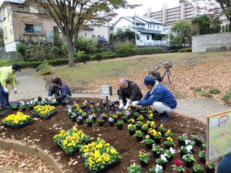 けやき広場花壇(花園)の植え替えをしました