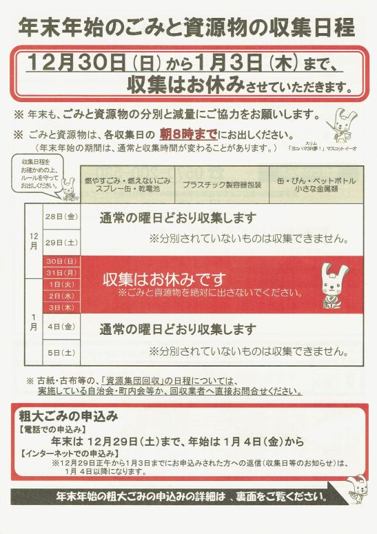 年末年始のゴミ出しは? 粗大ゴミはこちら↓ 共有: クリックして X で共有 (新しいウィンドウで開きます) X Facebook で共有するにはクリックしてください (新しいウィンドウで開きます) Facebook クリックして印刷 (新しいウィンドウで開きます) 印刷