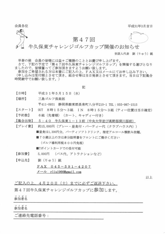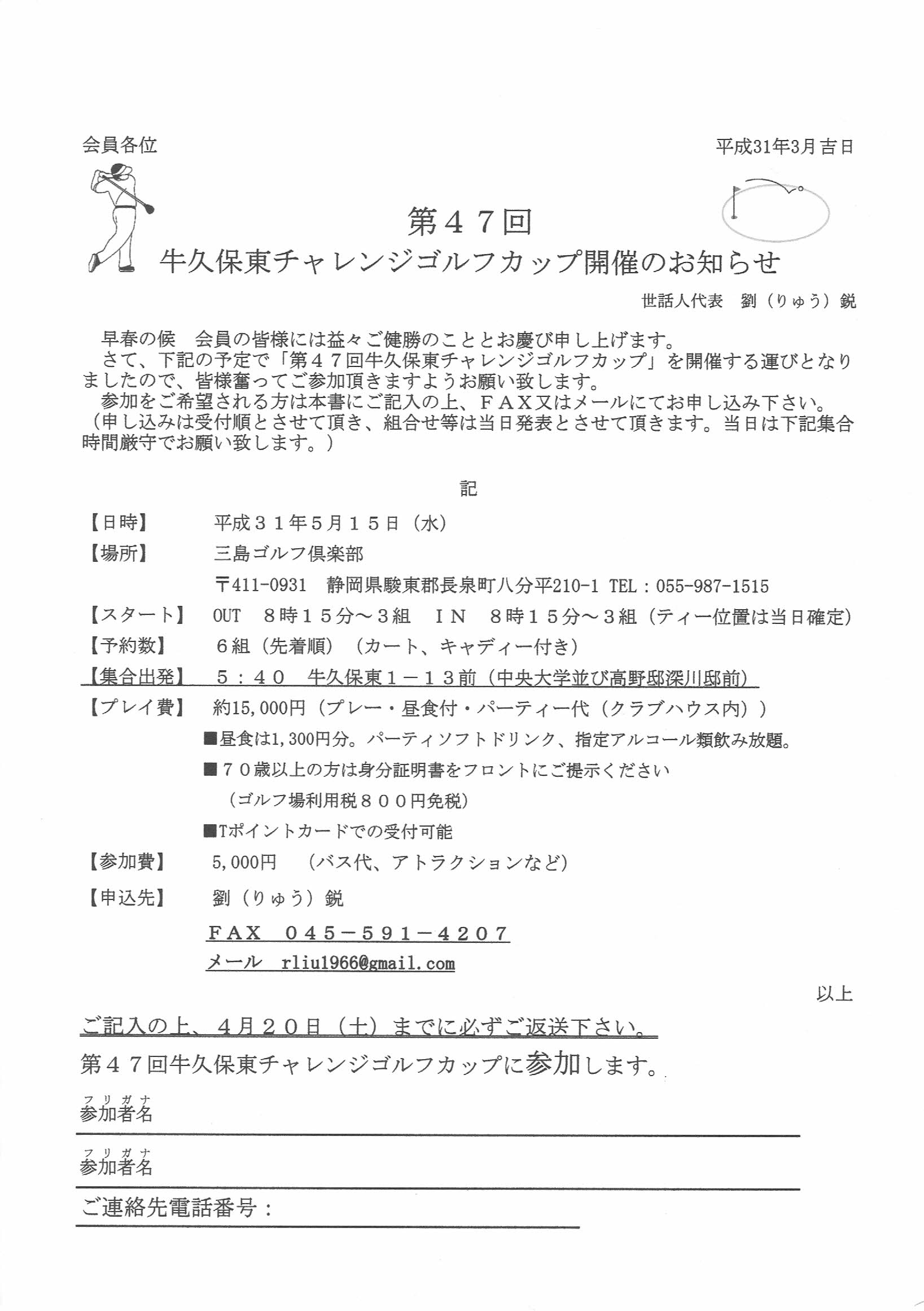 第47回牛久保東チャレンジゴルフカップのお知らせ 共有: クリックして X で共有 (新しいウィンドウで開きます) X Facebook で共有するにはクリックしてください (新しいウィンドウで開きます) Facebook クリックして印刷 (新しいウィンドウで開きます) 印刷 関連