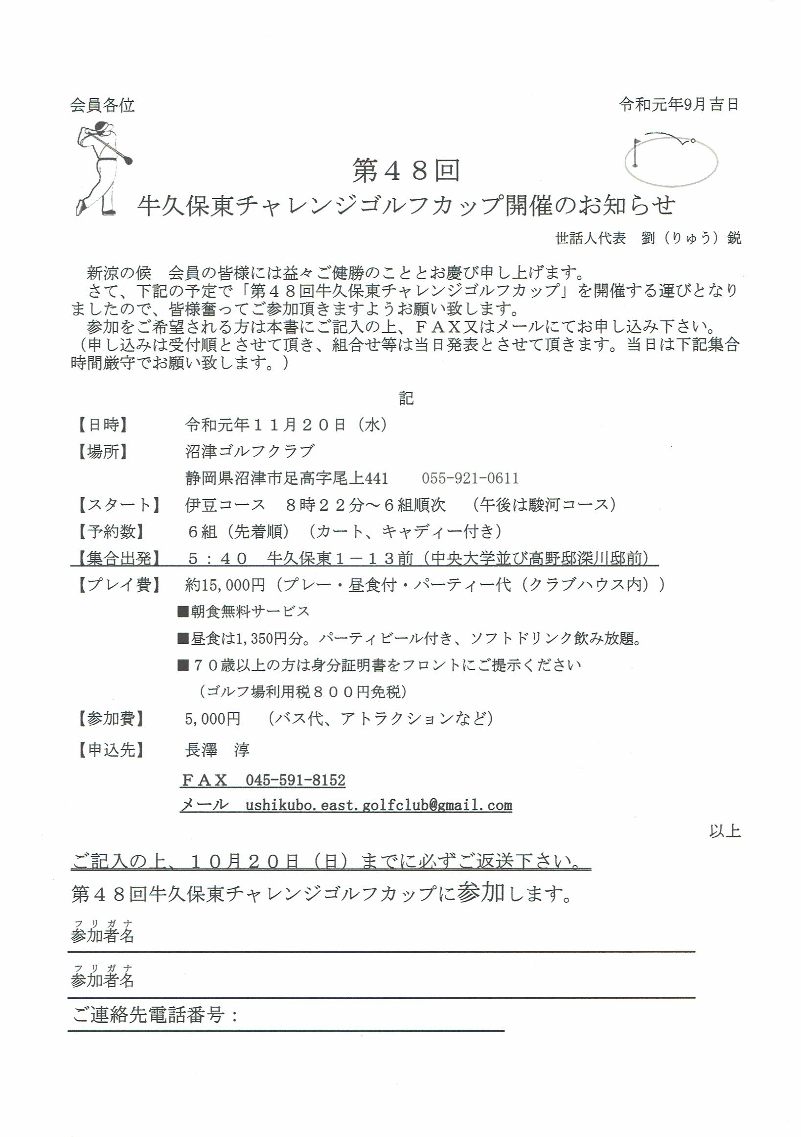 第48回牛久保東チャレンジゴルフカップのお知らせ 共有: クリックして X で共有 (新しいウィンドウで開きます) X Facebook で共有するにはクリックしてください (新しいウィンドウで開きます) Facebook クリックして印刷 (新しいウィンドウで開きます) 印刷 関連