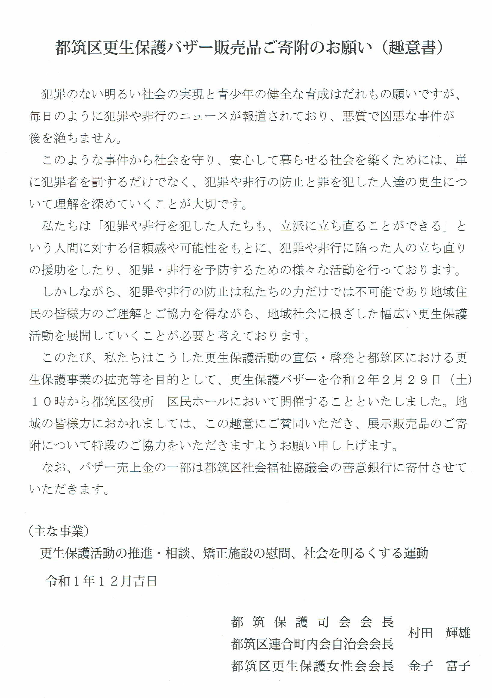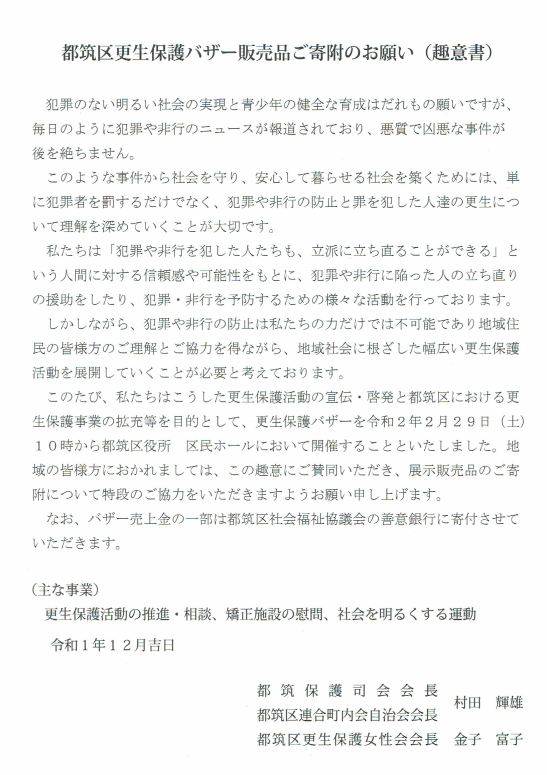 更生保護バザーにご寄付願います 共有: クリックして X で共有 (新しいウィンドウで開きます) X Facebook で共有するにはクリックしてください (新しいウィンドウで開きます) Facebook クリックして印刷 (新しいウィンドウで開きます) 印刷