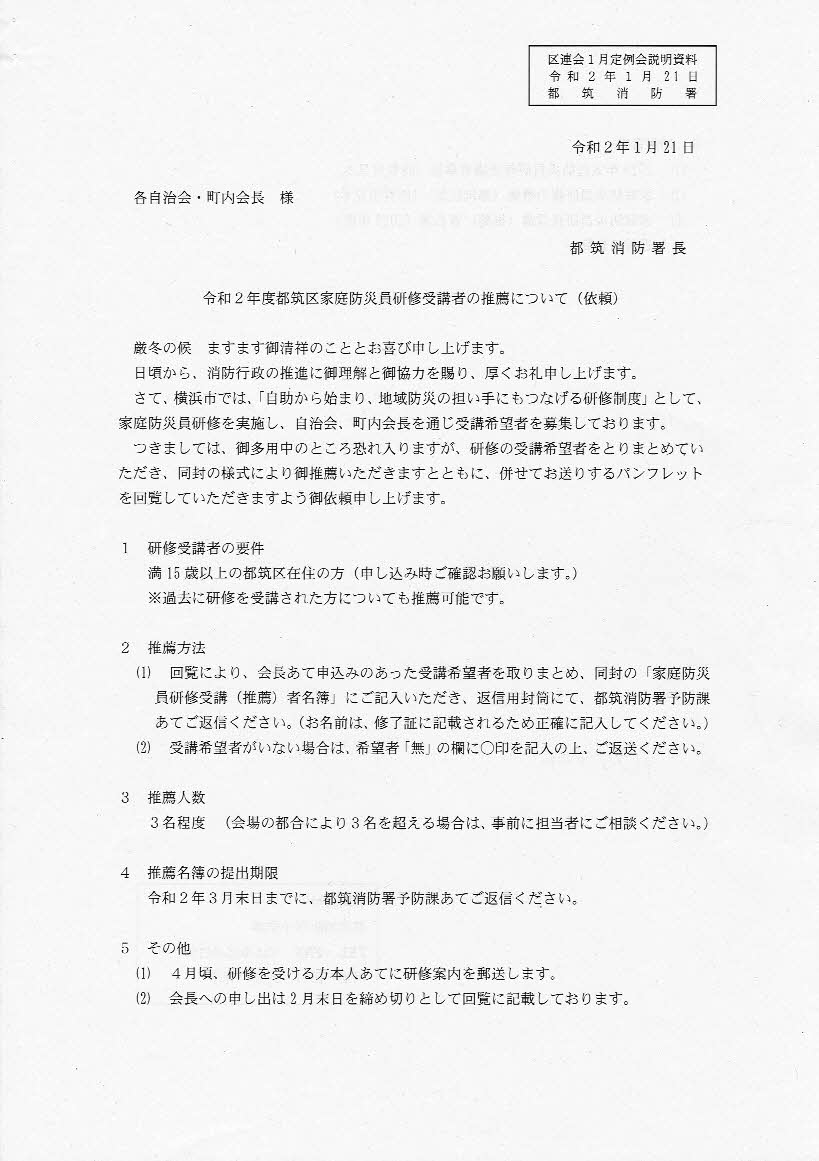 家庭防災員研修の受講者を募集します 希望者は2月末日までに町内会長あてお申し込みください。 共有: クリックして X で共有 (新しいウィンドウで開きます) X Facebook で共有するにはクリックしてください (新しいウィンドウで開きます) Facebook クリックして印刷 (新しいウィンドウで開きます) 印刷 関連