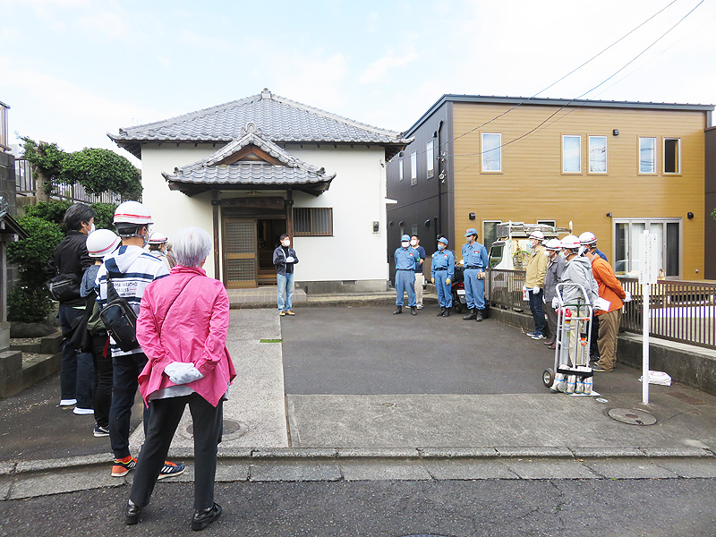 10月24日(土)午前10時より、牛久保東三丁目の安藤博様宅前で初期消火訓練を実施し、近隣住民や家庭防災員、役員等総勢24名が初期消火器具を使用した放水訓練に参加しました。