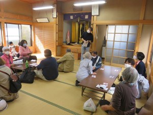 初期消火訓練終了後には、午前11時から古梅地蔵堂で「クロスロードゲーム」による机上訓練を実施しました。