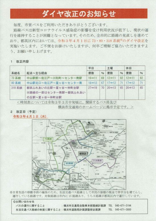 4.1~横浜市営バスのダイヤ改正のお知らせ 共有: クリックして X で共有 (新しいウィンドウで開きます) X Facebook で共有するにはクリックしてください (新しいウィンドウで開きます) Facebook クリックして印刷 (新しいウィンドウで開きます) 印刷 関連