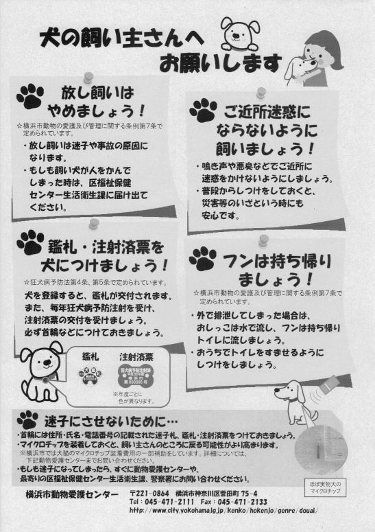 犬🐶の飼い主さんへお願い!! ※ 最近、犬の散歩中のフンの始末について住民から多くの苦情が出ています。一部の飼い主の無責任な行動が他の犬や飼い主さんにも迷惑をかけています。マナーは守りましよう。 共有: クリックして X で共有 (新しいウィンドウで開きます) X Facebook で共有するにはクリックしてください (新しいウィンドウで開きます) Facebook クリックして印刷 (新しいウィンドウで開きます) 印刷 関連