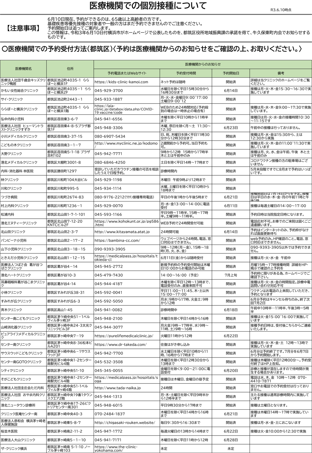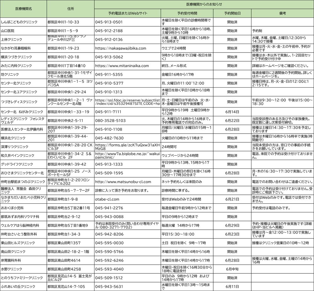 横浜市・都筑区での接種会場を探すときの参考にしてください