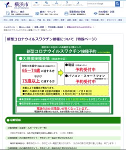 最新情報は横浜市のホームページ「新型コロナウイルスワクチン」で確認しましょう。大規模接種、集団接種、個別接種などの全貌が知りたいときは「新型コロナウイルスワクチン接種について(特設ページ)」へ。