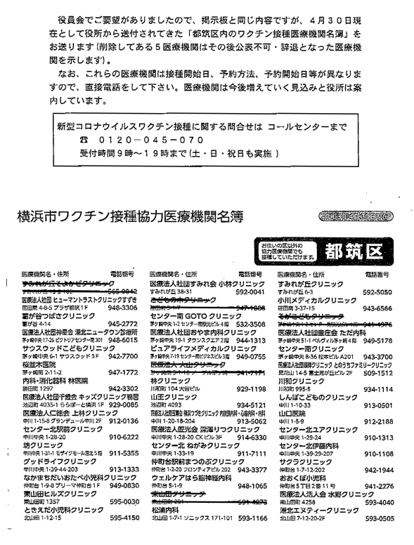 上記新型コロナウイルスワクチンページの「・医療機関で予約【都筑区】」で出てくるリストのお医者さんに問い合わせしてみる