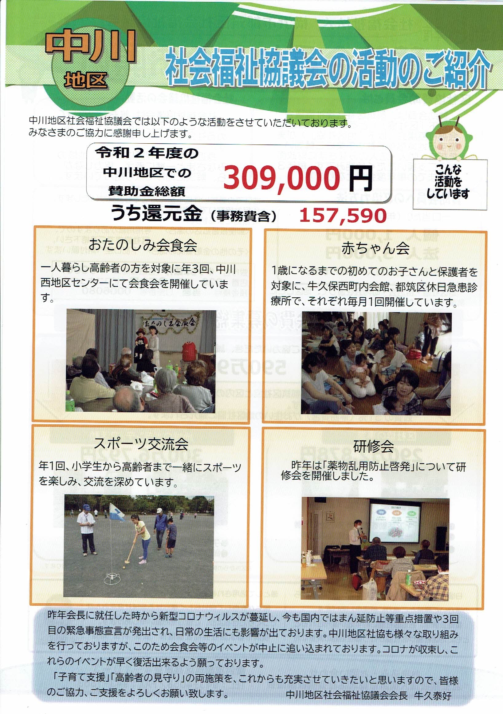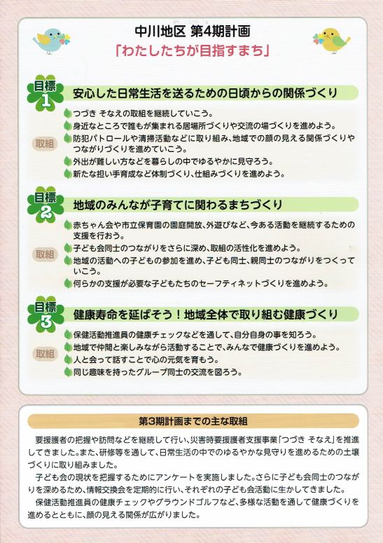 中川地区「地区別計画」を知ろう 重要な担い手の中川地区社会福祉協議会の活動を紹介します 共有: クリックして X で共有 (新しいウィンドウで開きます) X Facebook で共有するにはクリックしてください (新しいウィンドウで開きます) Facebook クリックして印刷 (新しいウィンドウで開きます) 印刷 関連