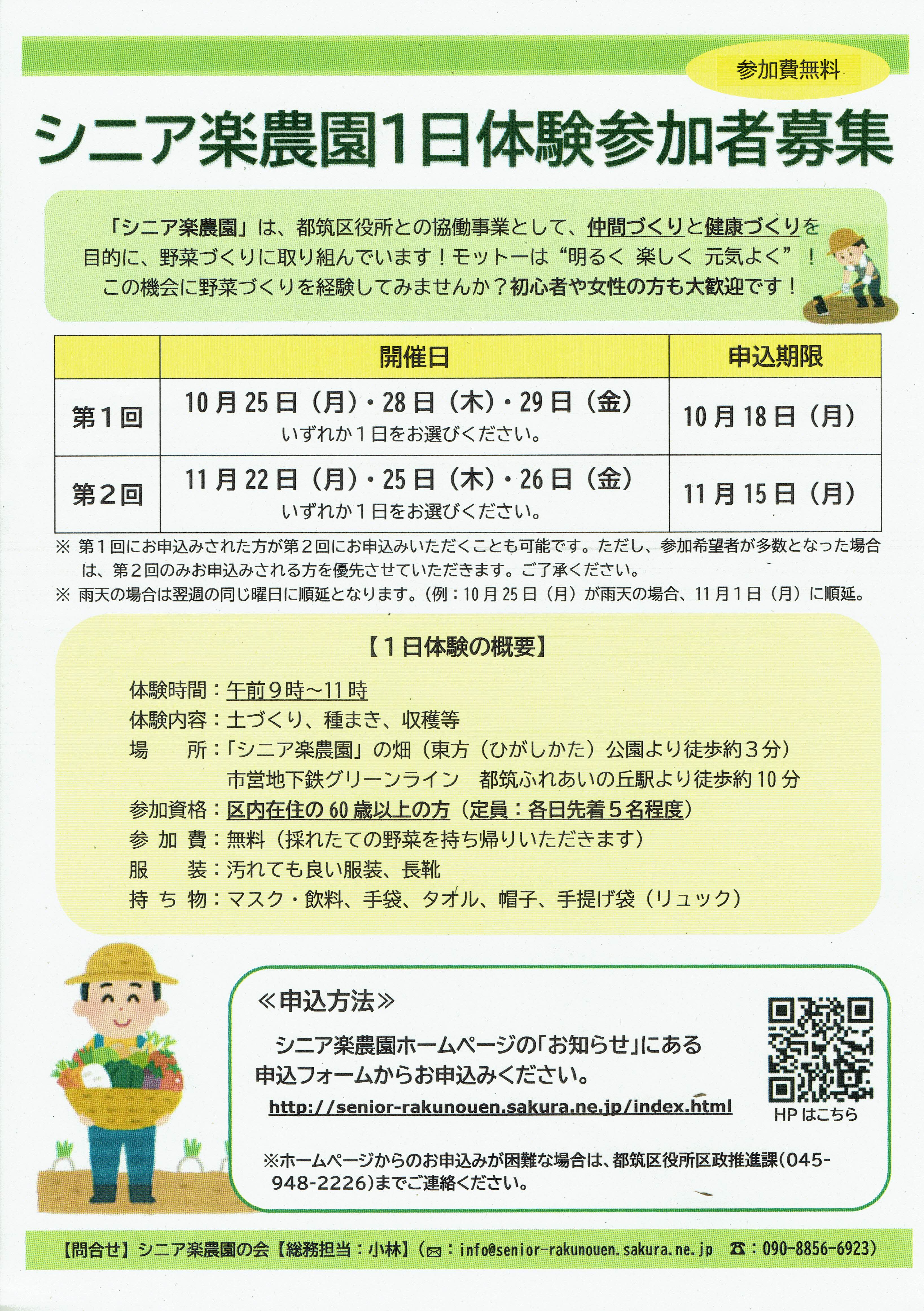 シニア楽農園一日体験はいかがでしょう 共有: クリックして X で共有 (新しいウィンドウで開きます) X Facebook で共有するにはクリックしてください (新しいウィンドウで開きます) Facebook クリックして印刷 (新しいウィンドウで開きます) 印刷 関連