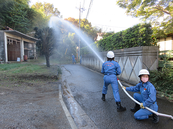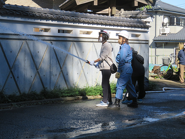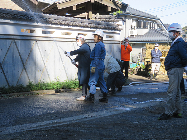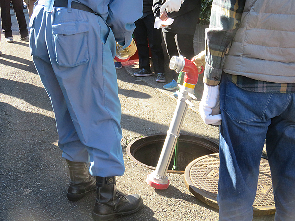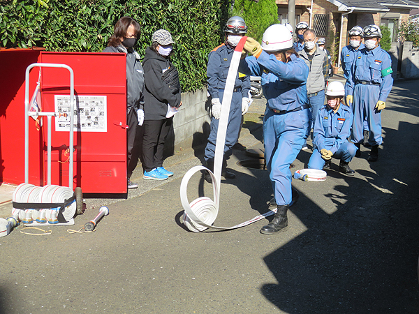 もしもの時、大きな火災になる前に自分たちで火を消し止められたらいいですよね。町内会では毎年1回、初期消火箱の使い方を体験する機会をつくっています。実際に放水するところまでやってみます。一度ご参加ください。
