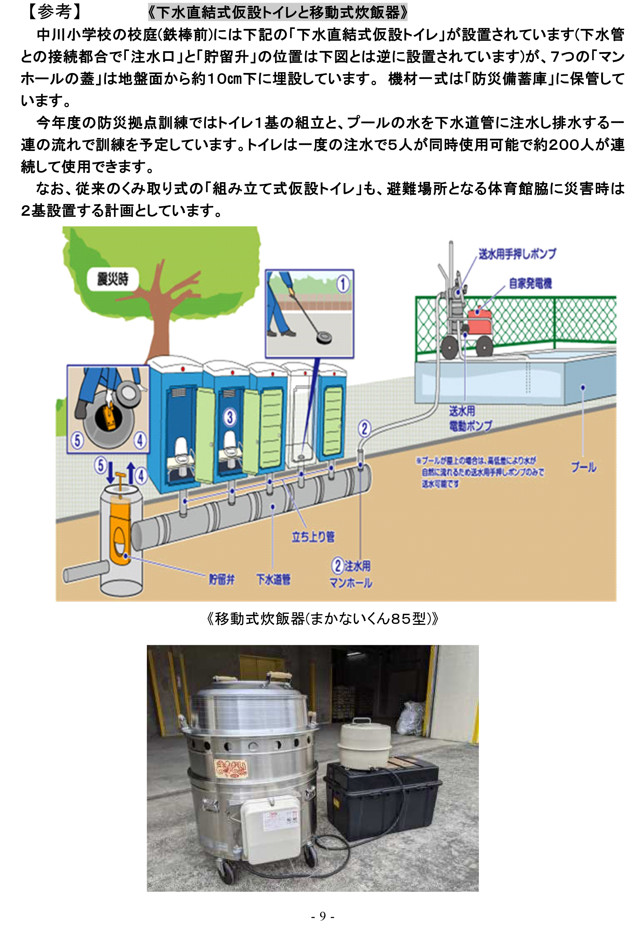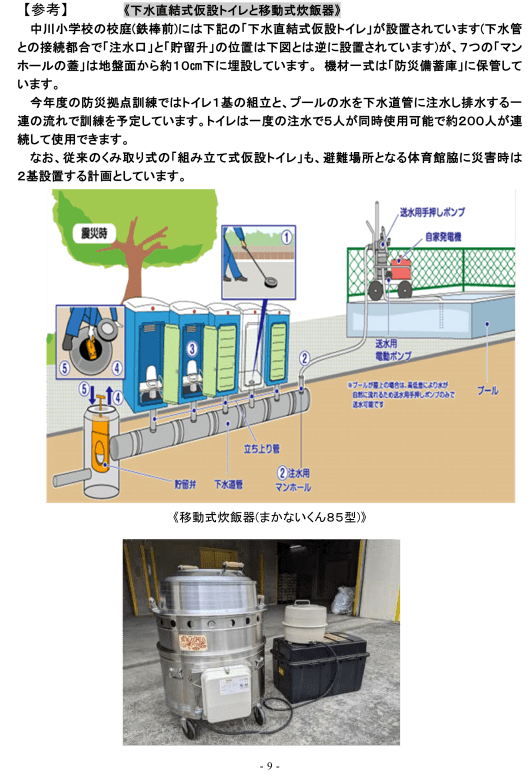 避難所運営も進化しています。地域防災訓練2021.11.23 地域防災拠点の中川小学校に37名が集合。ソーシャルディスタンスをとってます。 水洗トイレの組み立て体験 炊き出しの新兵器。キャスター付き炊飯器 避難スペースづくり。2m×1m /人確保すると114人分しか取れません。 共有: クリックして X で共有 (新しいウィンドウで開きます) X Facebook で共有するにはクリックしてください (新しいウィンドウで開きます) Facebook クリックして印刷 (新しいウィンドウで開きます) 印刷 関連