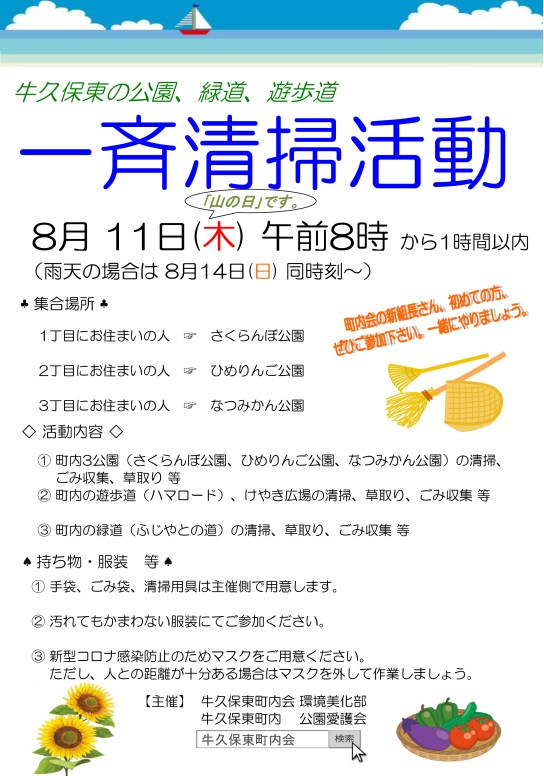 牛久保東のたからもの“緑のみち”を美しく──8.11(木・祝)一斉清掃のお知らせ 共有: クリックして X で共有 (新しいウィンドウで開きます) X Facebook で共有するにはクリックしてください (新しいウィンドウで開きます) Facebook クリックして印刷 (新しいウィンドウで開きます) 印刷 関連
