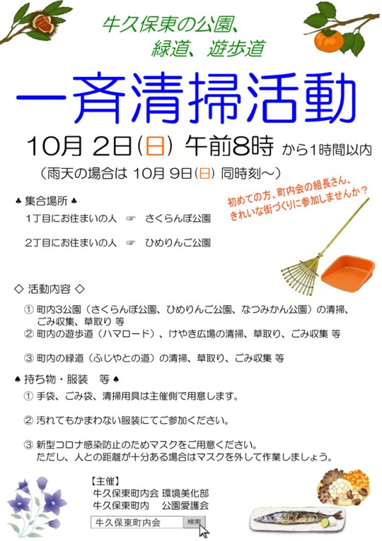 まちがキレイだといいことが起きる──10/2(日)一斉清掃です。 回覧板では間に合わない月初めの活動のお知らせです。みんなでこのまちのたからもの緑のみちをキレイにしましょ 共有: クリックして X で共有 (新しいウィンドウで開きます) X Facebook で共有するにはクリックしてください (新しいウィンドウで開きます) Facebook クリックして印刷 (新しいウィンドウで開きます) 印刷 関連