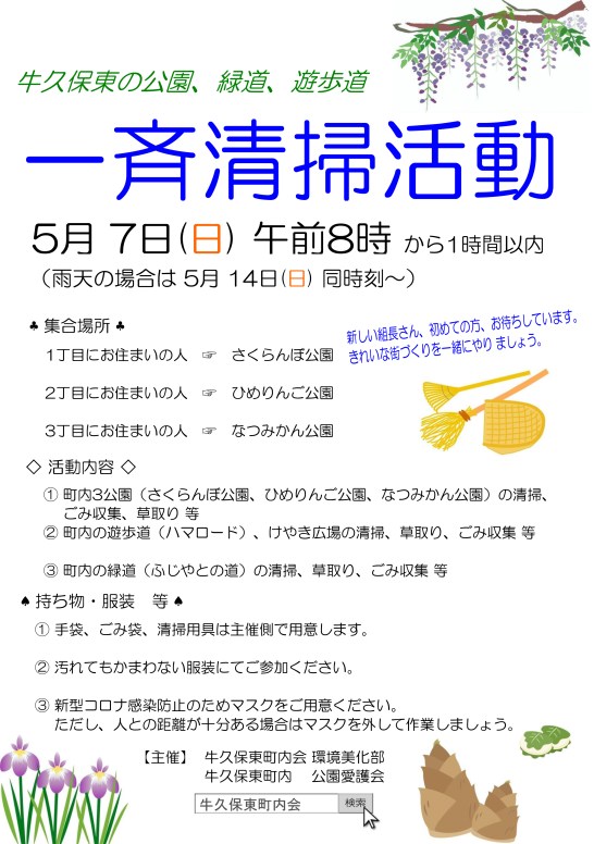 ゴールデンウィークの最後をまちの美化でしめくくろう──5/7 8:00~一斉清掃のお知らせ 一斉清掃ポスター 2023年05月pdfダウンロード 共有: クリックして X で共有 (新しいウィンドウで開きます) X Facebook で共有するにはクリックしてください (新しいウィンドウで開きます) Facebook クリックして印刷 (新しいウィンドウで開きます) 印刷 関連