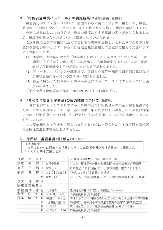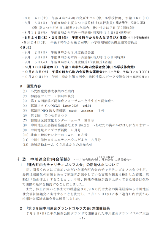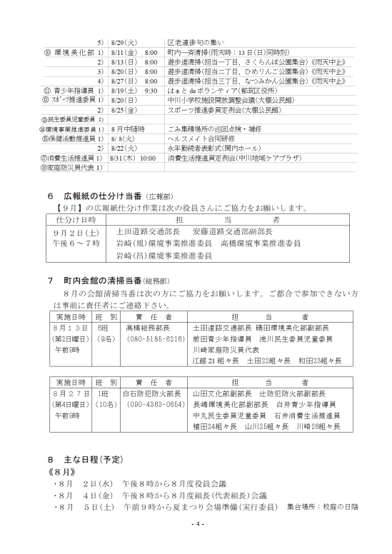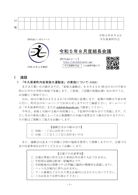 令和5年8月の回覧資料 8月5日夏まつりのため毎月5日開催の組長会議を4日にずらします。 令和5年8月回覧資料PDFダウンロード 共有: クリックして X で共有 (新しいウィンドウで開きます) X Facebook で共有するにはクリックしてください (新しいウィンドウで開きます) Facebook クリックして印刷 (新しいウィンドウで開きます) 印刷 関連