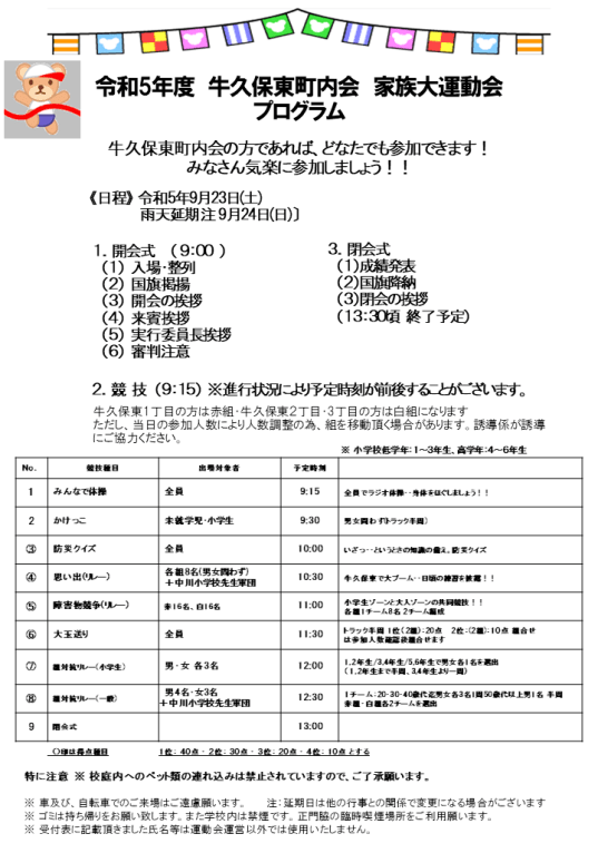 準備のための実行委員集合時間を変更していますのでご確認ください。令和5年9月の回覧資料4ページです。
