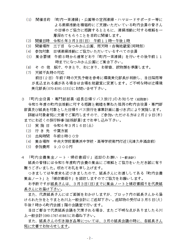 今年度(令和5年)のさいごの牛久保東の道や公園や緑道の一斉清掃は3/3(日)でーす コロナ禍間には行っていなかった「清掃協力者感謝の集い」を久しぶりになつみかん公園で開催予定!! 一斉清掃ポスター 2024年03月PDFダウンロード 共有: クリックして X で共有 (新しいウィンドウで開きます) X Facebook で共有するにはクリックしてください (新しいウィンドウで開きます) Facebook クリックして印刷 (新しいウィンドウで開きます) 印刷