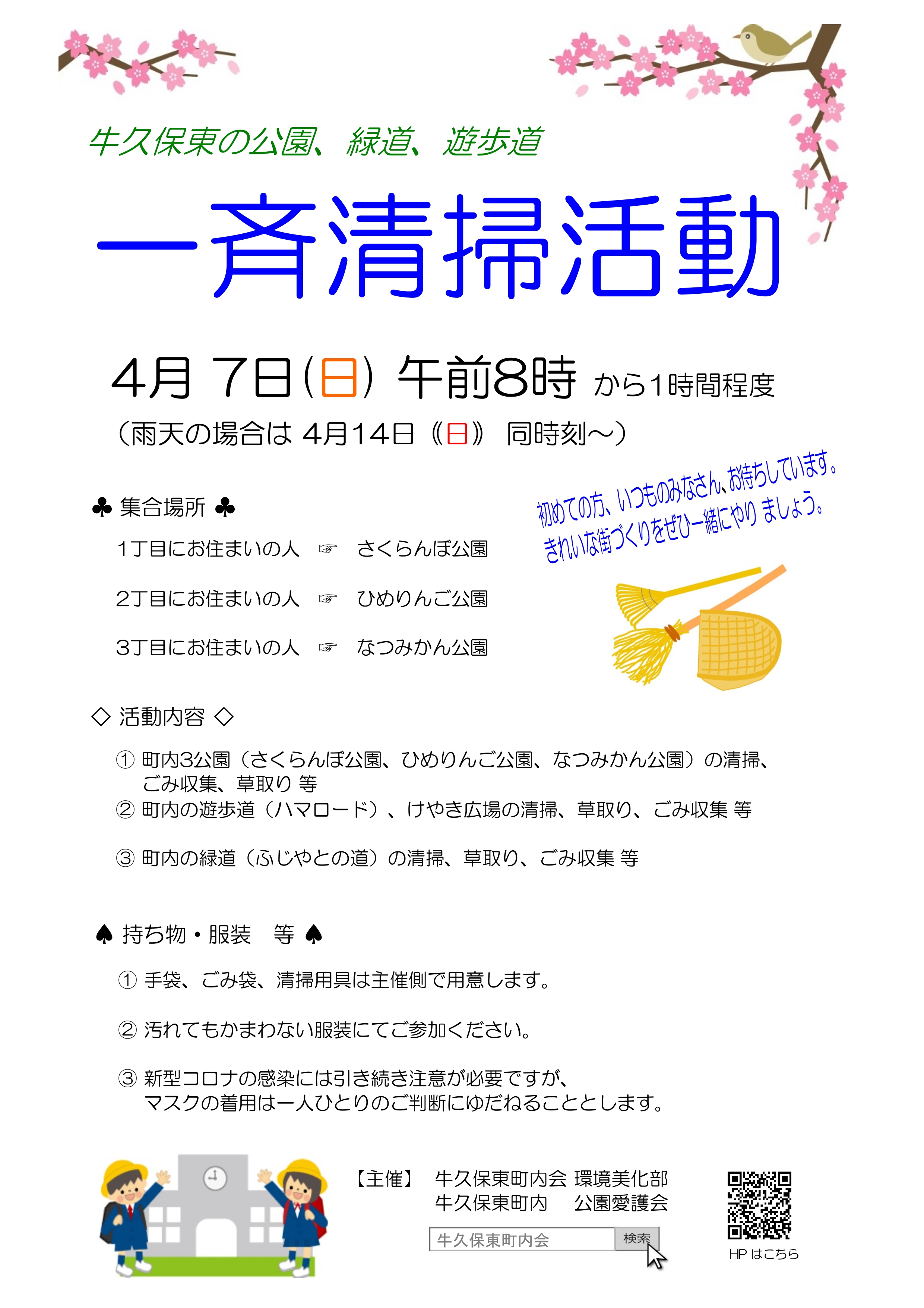 新年度(令和6年)最初の一斉清掃は4/7(日)です 一斉清掃ポスター 2024年03月PDFダウンロード 共有: クリックして X で共有 (新しいウィンドウで開きます) X Facebook で共有するにはクリックしてください (新しいウィンドウで開きます) Facebook クリックして印刷 (新しいウィンドウで開きます) 印刷 関連