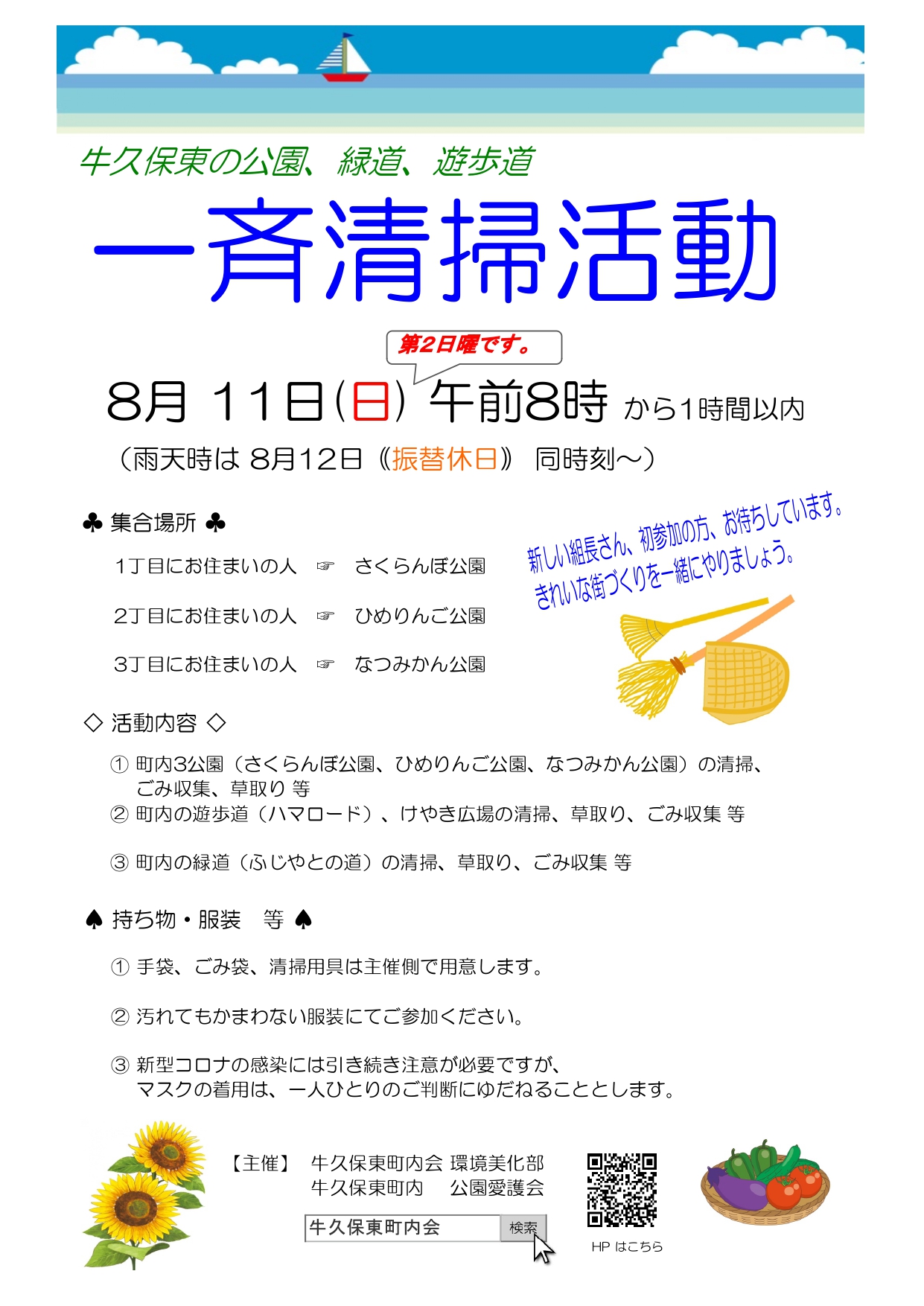 令和6年8月の一斉清掃は8/11(日)です 共有: クリックして X で共有 (新しいウィンドウで開きます) X Facebook で共有するにはクリックしてください (新しいウィンドウで開きます) Facebook クリックして印刷 (新しいウィンドウで開きます) 印刷 関連
