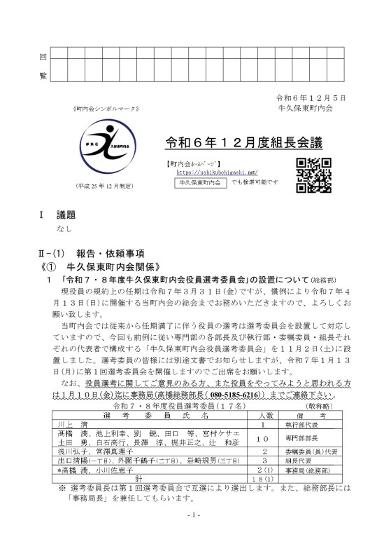 令和6年12月の回覧資料 令和6年12月度組長会議資料ダウンロード 共有: クリックして X で共有 (新しいウィンドウで開きます) X Facebook で共有するにはクリックしてください (新しいウィンドウで開きます) Facebook クリックして印刷 (新しいウィンドウで開きます) 印刷 関連
