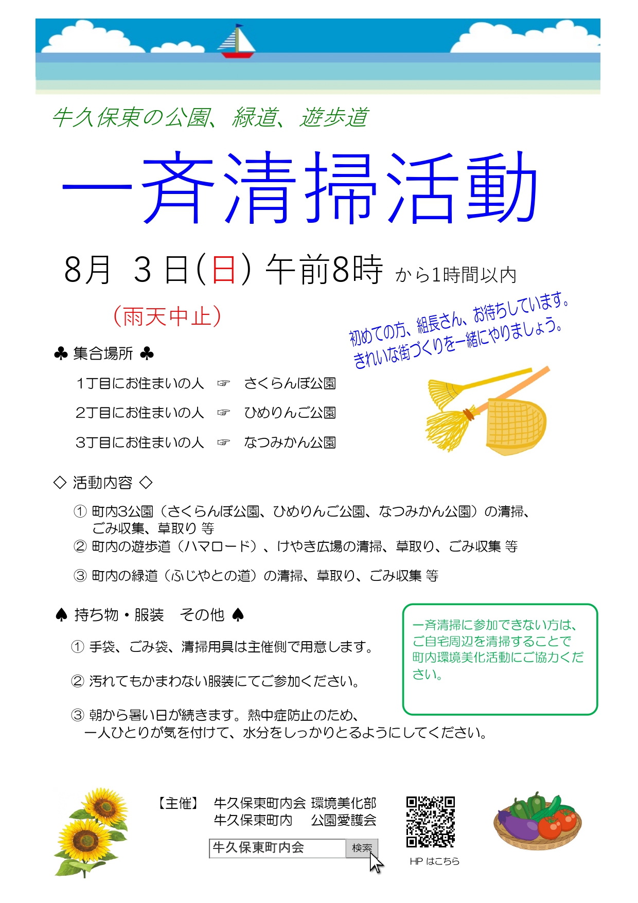令和7年8月の一斉清掃は8/3(日)です 共有: クリックして X で共有 (新しいウィンドウで開きます) X Facebook で共有するにはクリックしてください (新しいウィンドウで開きます) Facebook クリックして印刷 (新しいウィンドウで開きます) 印刷 関連