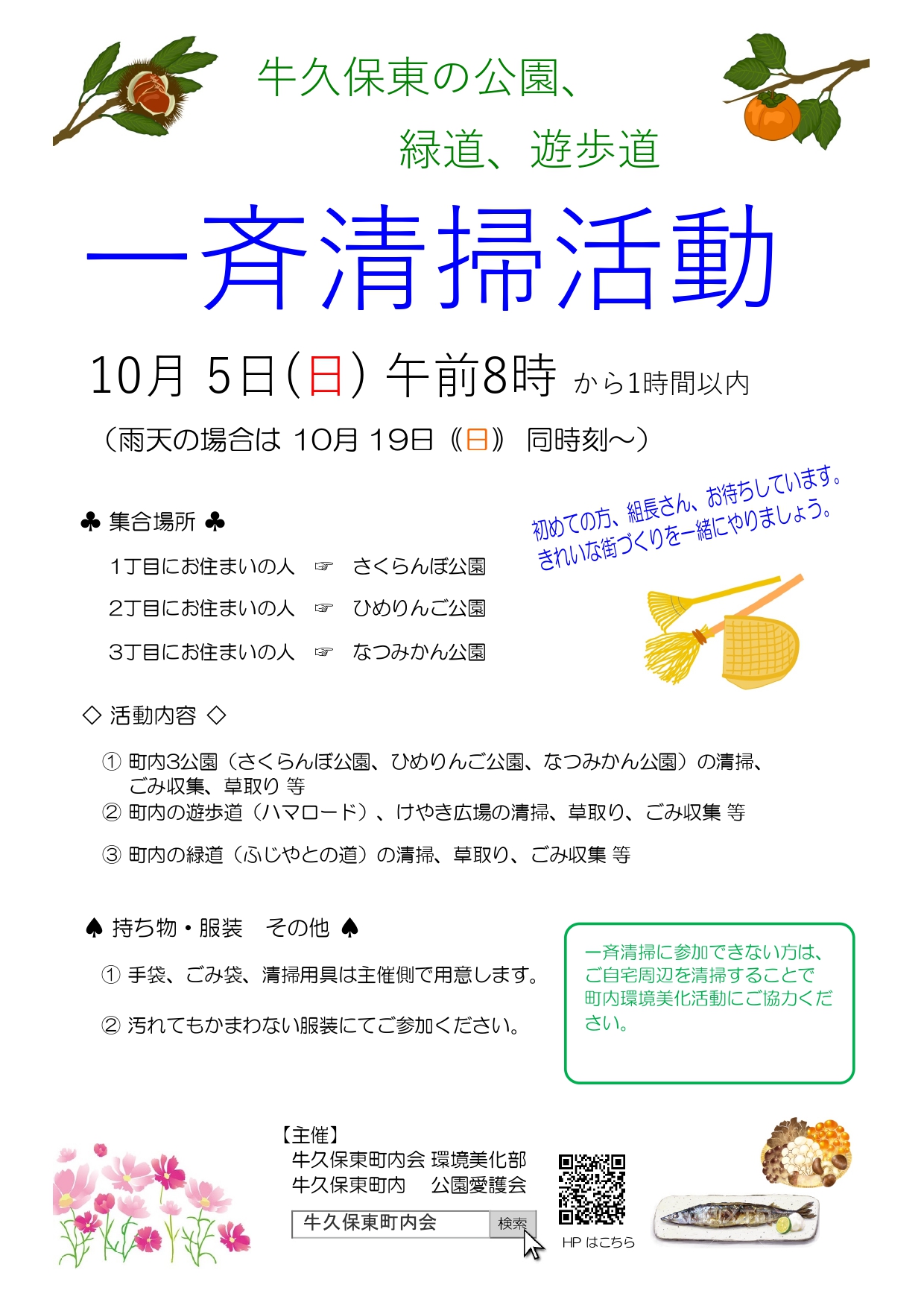 令和7年10月の一斉清掃は10/5(日)です 共有: クリックして X で共有 (新しいウィンドウで開きます) X Facebook で共有するにはクリックしてください (新しいウィンドウで開きます) Facebook クリックして印刷 (新しいウィンドウで開きます) 印刷 関連
