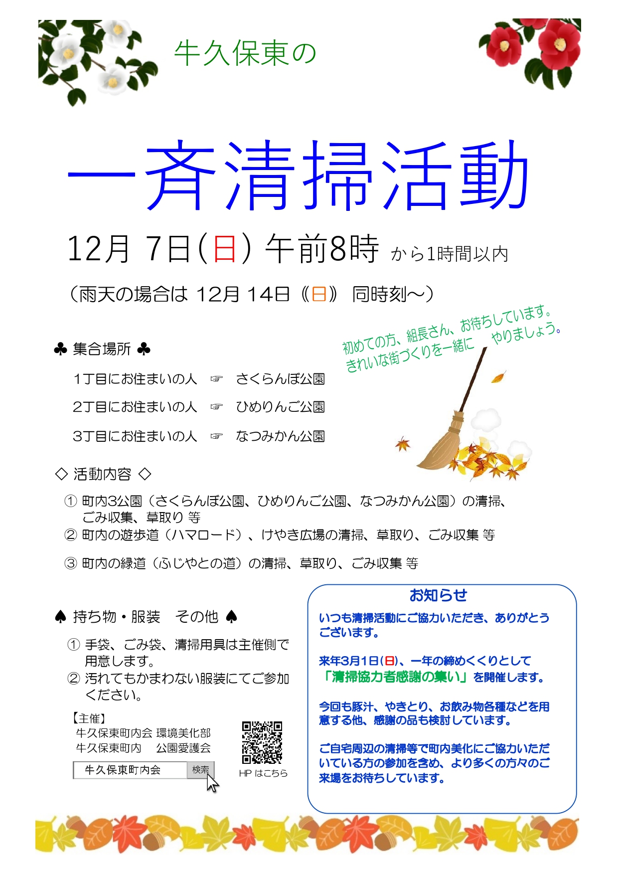 令和7年12月の一斉清掃は12/7(日)です 共有: クリックして X で共有 (新しいウィンドウで開きます) X Facebook で共有するにはクリックしてください (新しいウィンドウで開きます) Facebook クリックして印刷 (新しいウィンドウで開きます) 印刷 関連