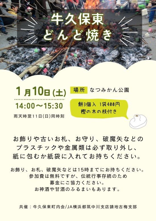 2026年のどんど焼きは1月10日(土)です 共有: クリックして X で共有 (新しいウィンドウで開きます) X Facebook で共有するにはクリックしてください (新しいウィンドウで開きます) Facebook クリックして印刷 (新しいウィンドウで開きます) 印刷 関連