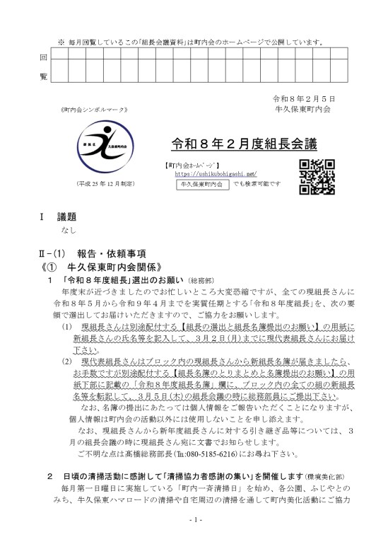 令和8年2月の回覧資料 令和8年2月度組長会議資料ダウンロード 共有: X で共有 (新しいウィンドウで開きます) X Facebook で共有 (新しいウィンドウで開きます) Facebook 印刷 (新しいウィンドウで開きます) 印刷