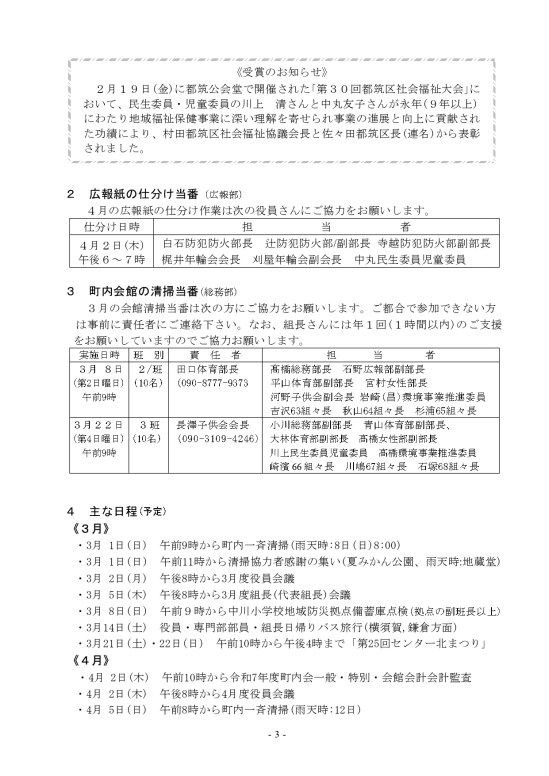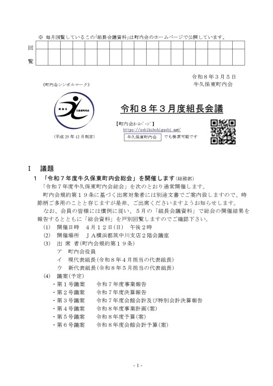 令和8年3月の回覧資料 令和8年3月度組長会議資料ダウンロード 共有: X で共有 (新しいウィンドウで開きます) X Facebook で共有 (新しいウィンドウで開きます) Facebook 印刷 (新しいウィンドウで開きます) 印刷 関連