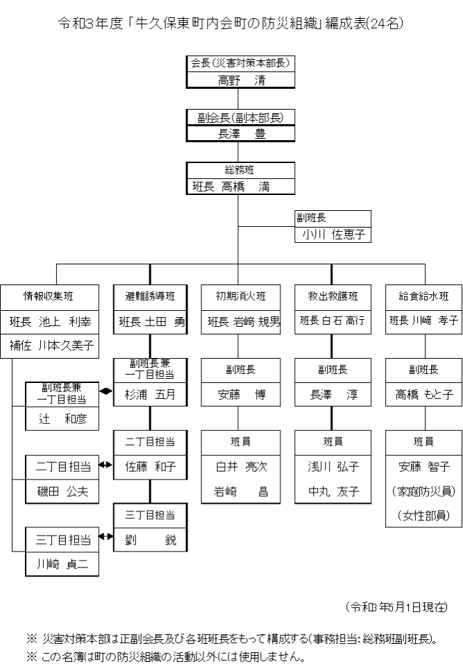 | 【登録者の要件】 次の、①~③の条件を全て満たす方が対象です。 ① 牛久保東町内会に加入している世帯の方 ② 次のいずれかに当てはまる方 ア 高齢者(満65歳以上)のうち、ひとり暮らしの方、 寝たきりの方、または高齢者だけの世帯の方 イ 障害者手帳をお持ちの方(年齢制限はありません) ③ 災害時に自力避難が困難で、安否確認や避難時支援を希望される方 |