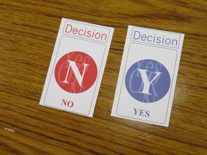 クロスロードゲームは、災害現場にいる地域住民一人ひとりの判断が地域防災の実質を構成するという考え方に立脚し、二律背反する選択肢をどのように意思決定していくのか、カードゲーム形式で学ぶものです。この日は5人ごと4つのグループに分かれ合計20名が参加しましたが、非常災害時には様々な情報や意見が錯綜するなか、短時間で意思決定していかなければならない難しさを実感する訓練となりました。