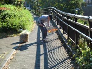 お正月気分も抜けた13日、JA横浜都筑中川支店請地古梅支部と牛久保東町内会の共催で行われた「どんと焼き」に密着しました。区内でも様々な地区でどんど焼きとかどんどん焼きとかいわれる「賽の神(さいのかみ)の火祭り行事」が行われています。ちなみにここ牛久保東では「どんと焼き」と呼んでいるらしい。